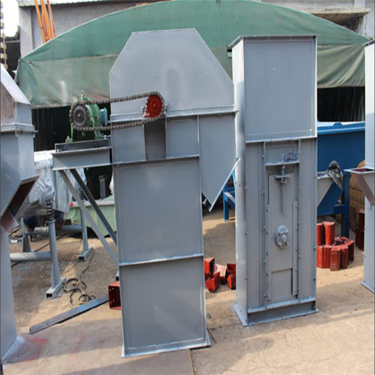 斗式提升機由上部區段、中部機殼、下部區段、帶料斗的輸送帶等牽引部件、傳動裝置和室外檢修平臺組成。